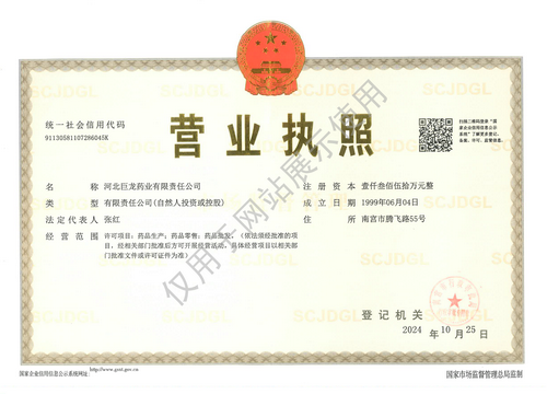 版權所有:河北巨龍藥業(yè)有限責任公司 冀ICP備19023826號-1   1733465040158507.png  冀公網(wǎng)安備13058102000452號 證書編號 :(冀)-非經營性-XXXX-XXXX